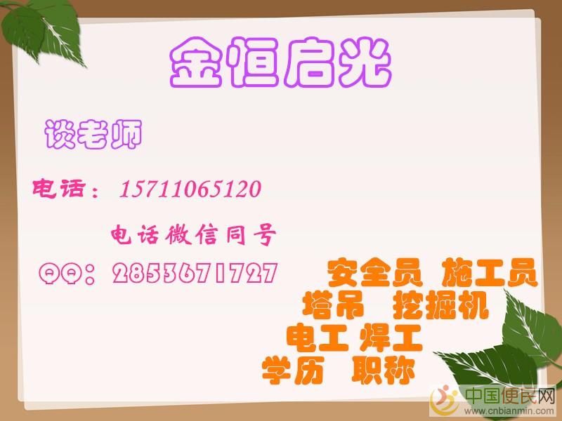 施工员(工长)(土建、市政、电气、暖通)、安全员、资料员、预算员、质检员、测量员、材料员、试验员、工程技术员,随时报名,常年招生,考试时间一般二个月安排一次欢迎www.cnbianmin.com。